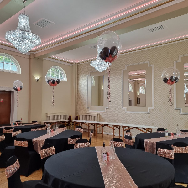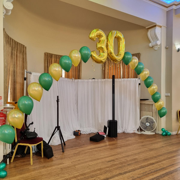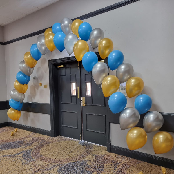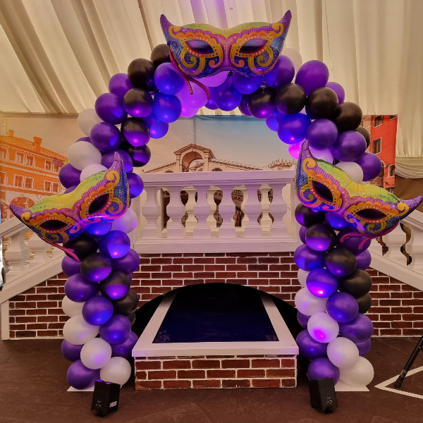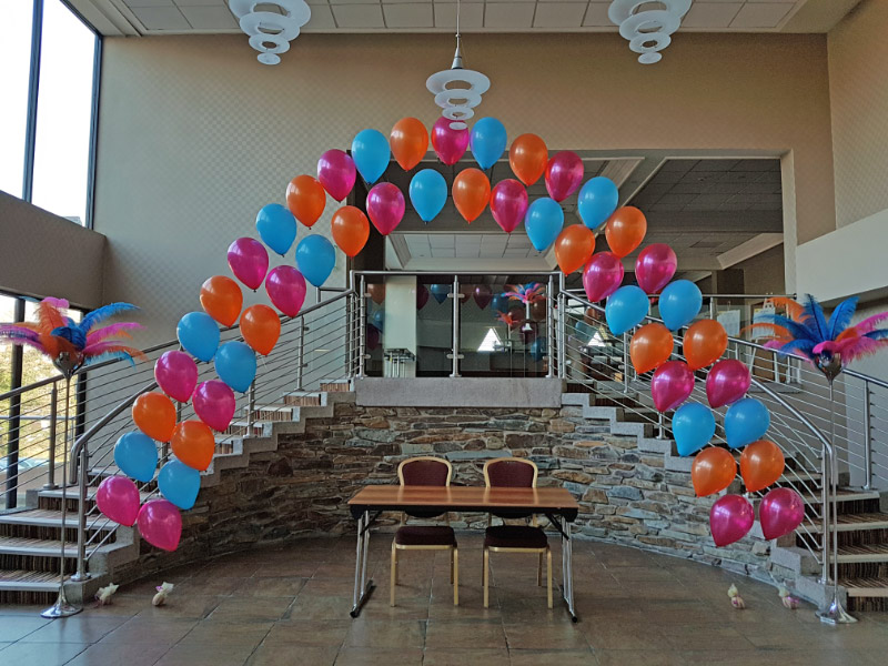 We have a range of balloon arches to choose from including a single pearl arch, crown arch, name arch, swirl arch or double bubble arch. Ask about our new bubble balloons or lifesize airwalkers.