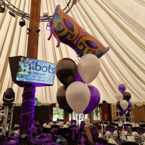 We have been delivering balloons for parties to Rugby, Coventry & Warwickshire, throughout the Midlands and nationally for larger events since 1999. Make your party stand out from the crowd with professional balloon displays. We can decorate your tables with balloon bouquets and build 6ft swirl balloon columns and swirl balloon arches. Choose from latex or foil balloons in many colours and designs.