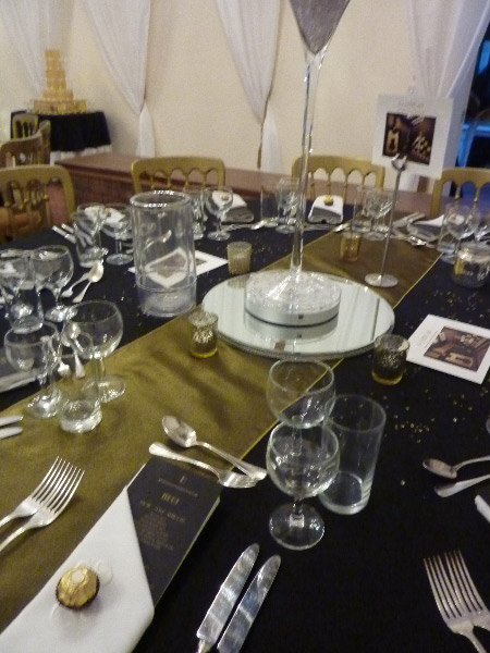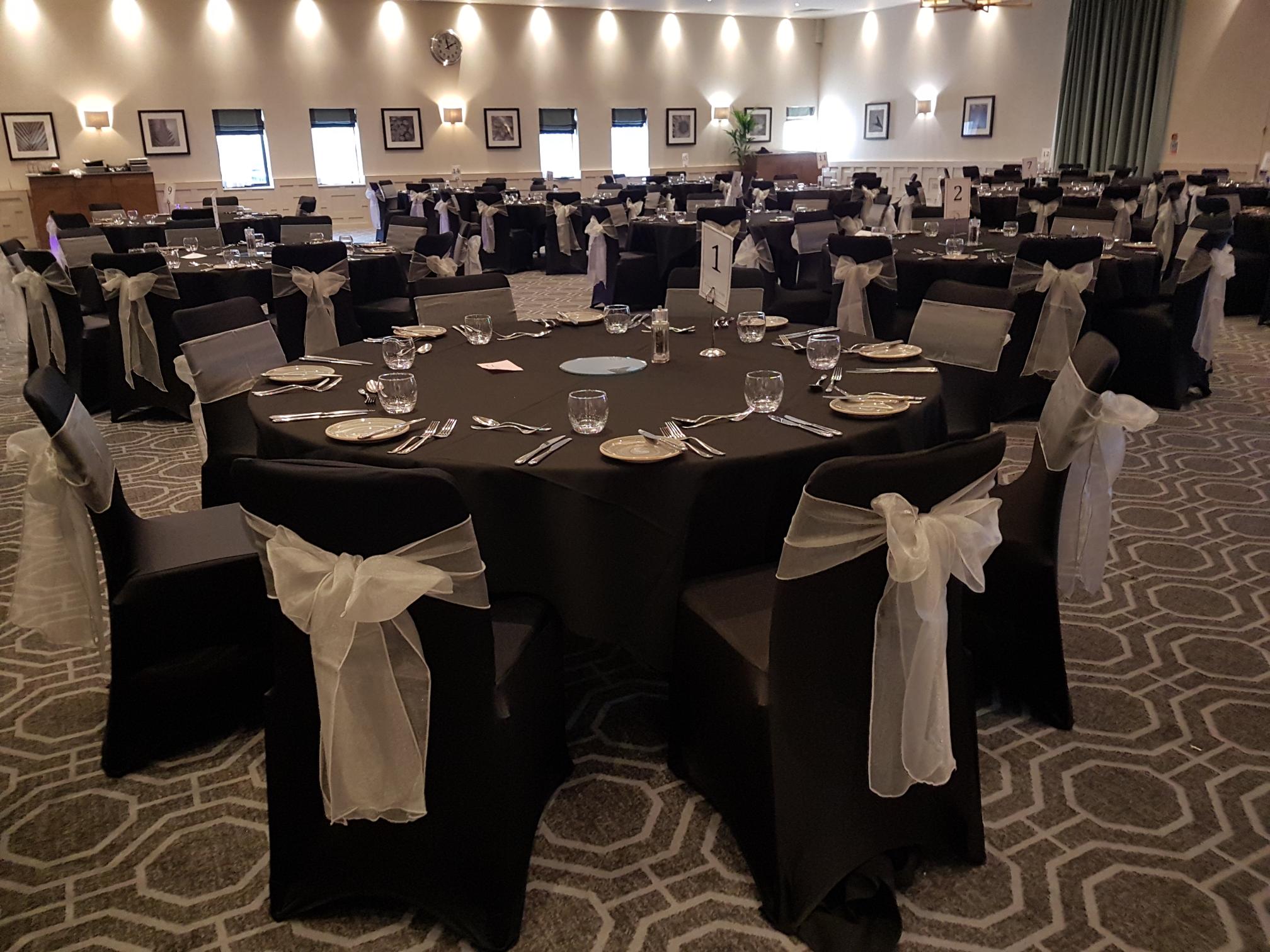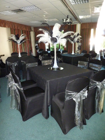 - Black table cloths £12, white damask napkins £1, black napkins £1 each.
