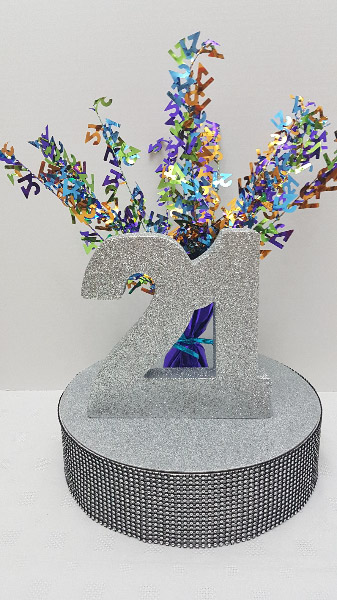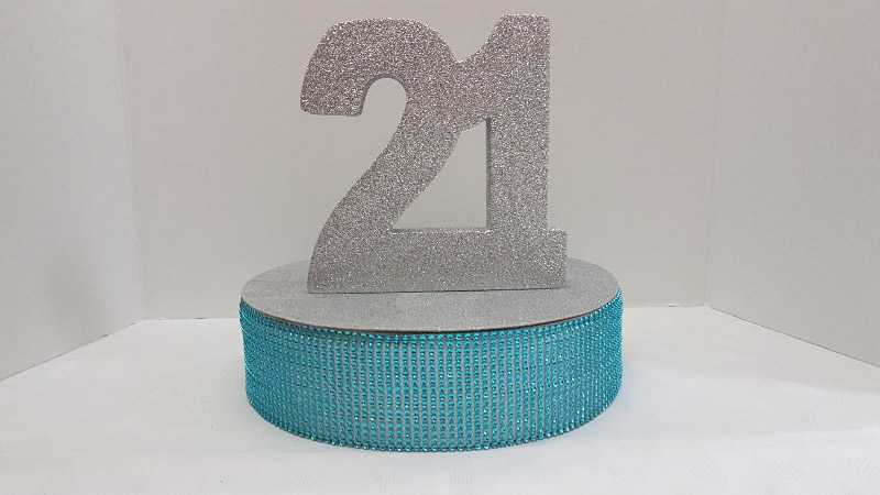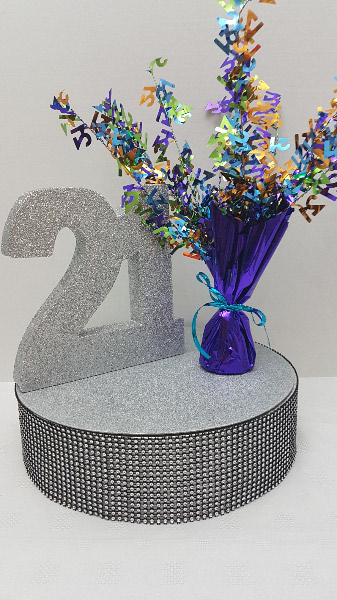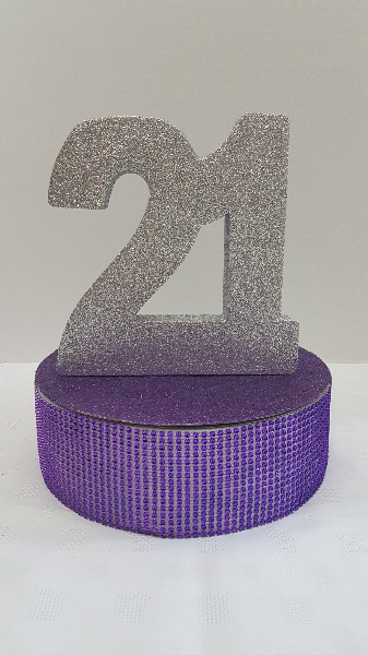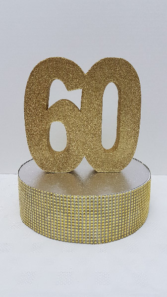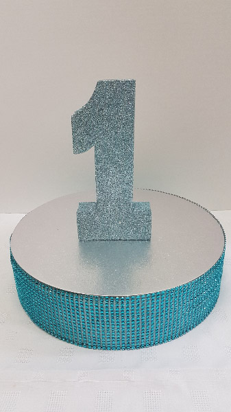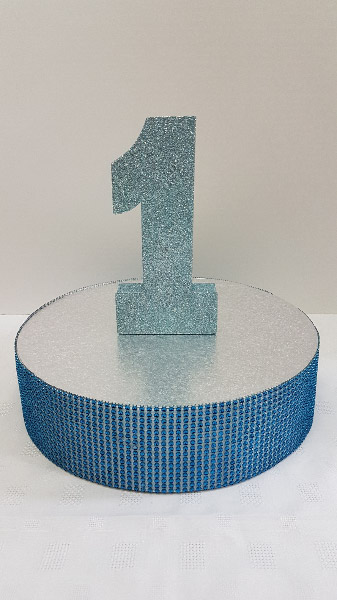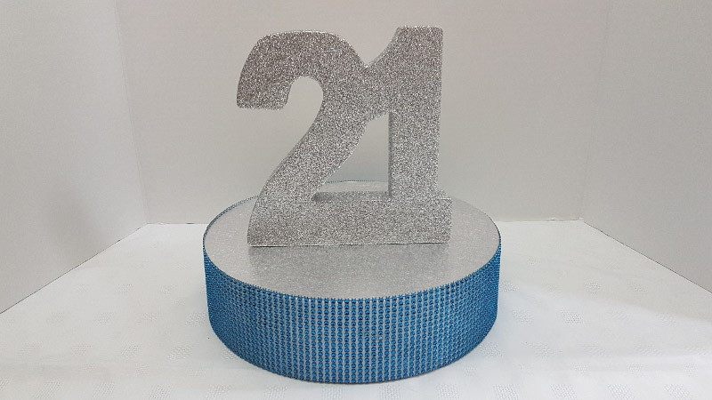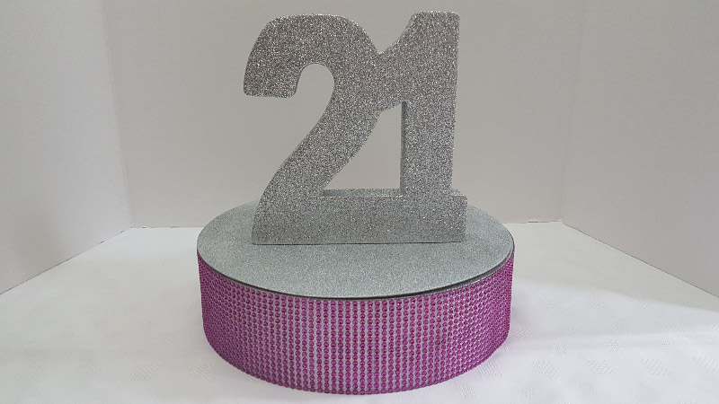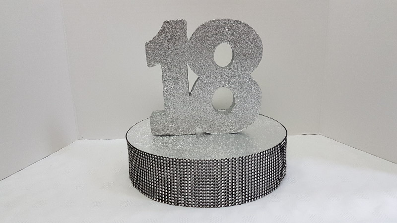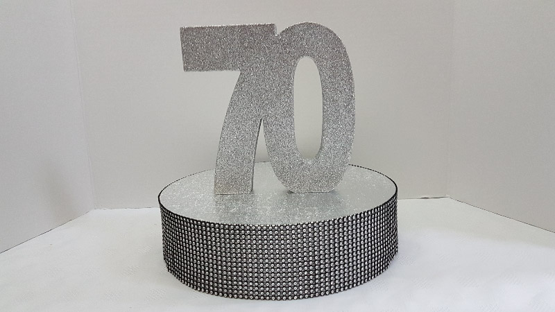 10inch diamante riser with silver top and base plus glitter number= £25.00