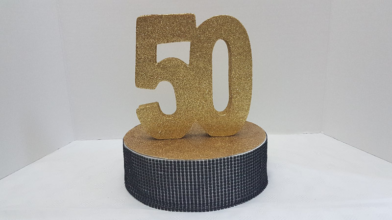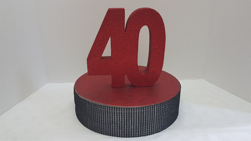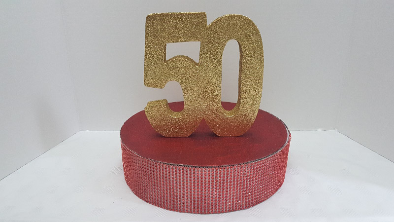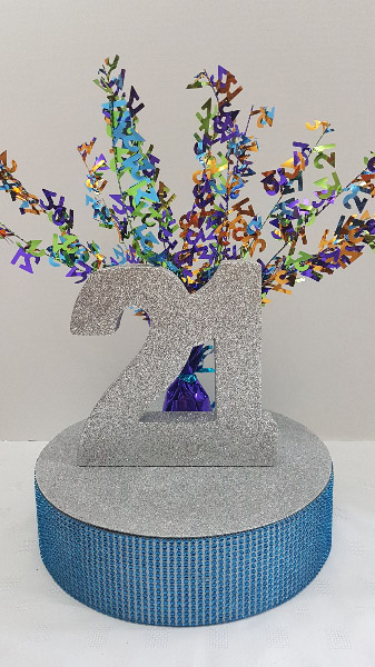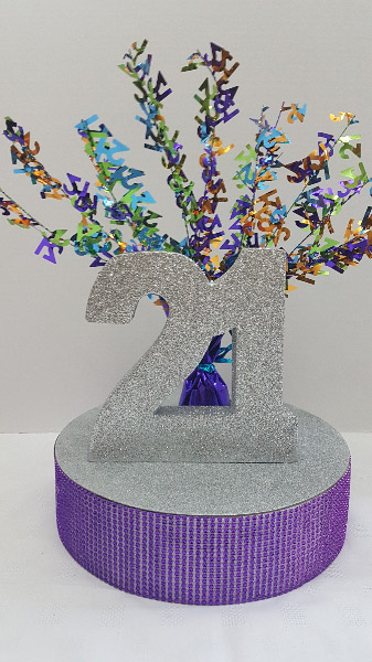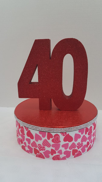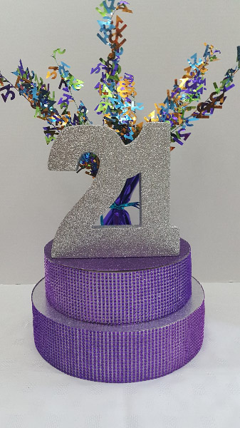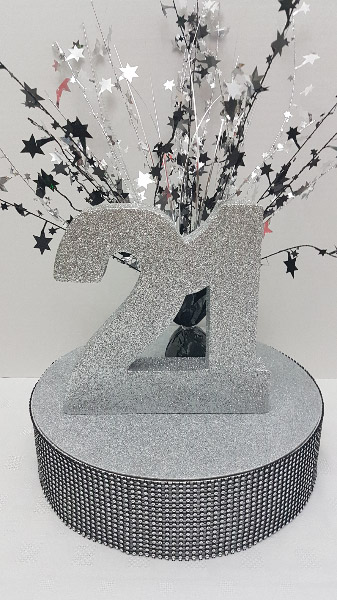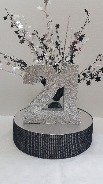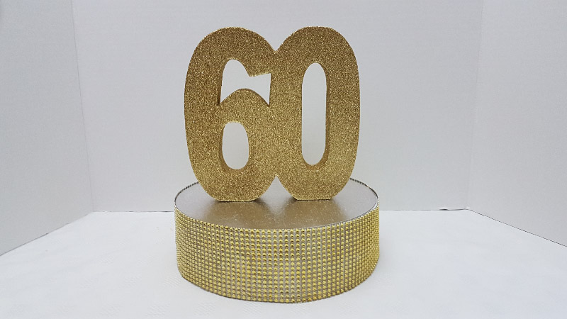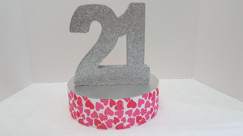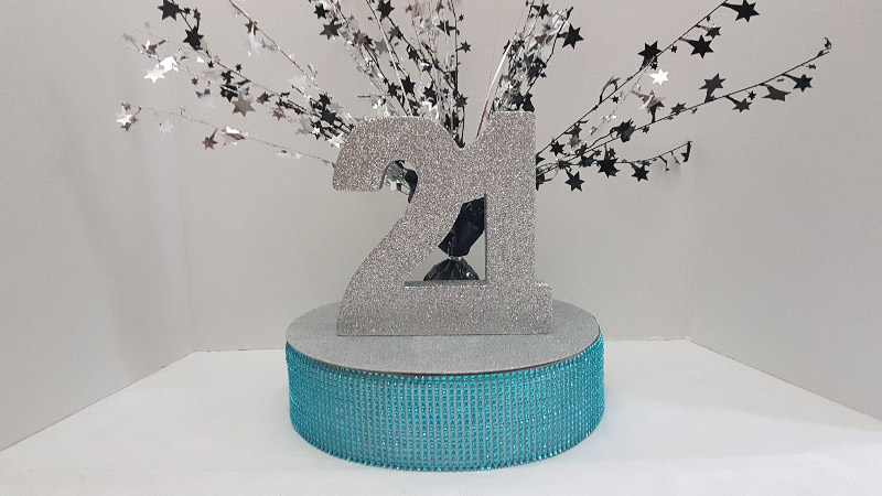 10inch diamante riser with silver top and base plus glitter number= £25.00