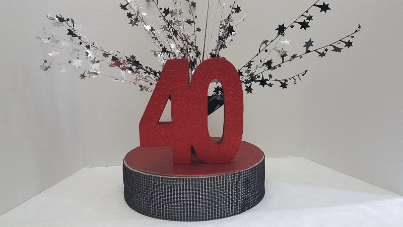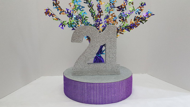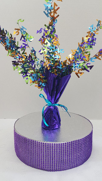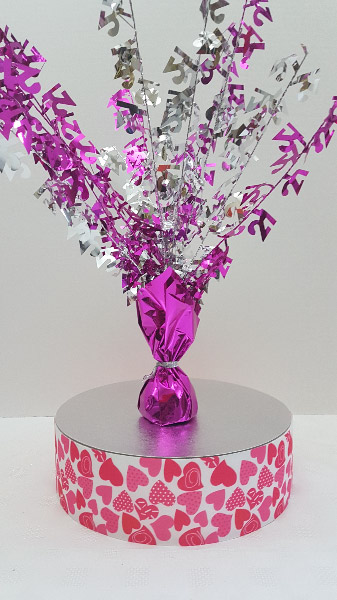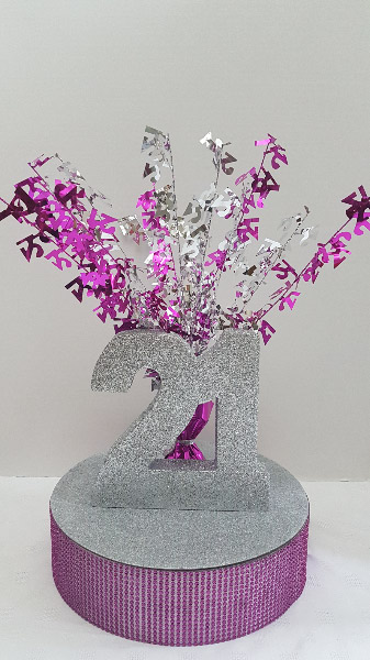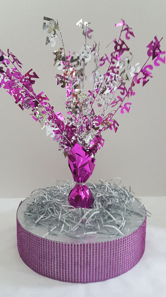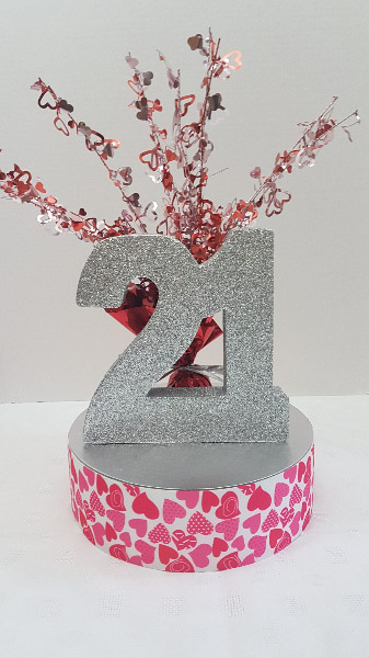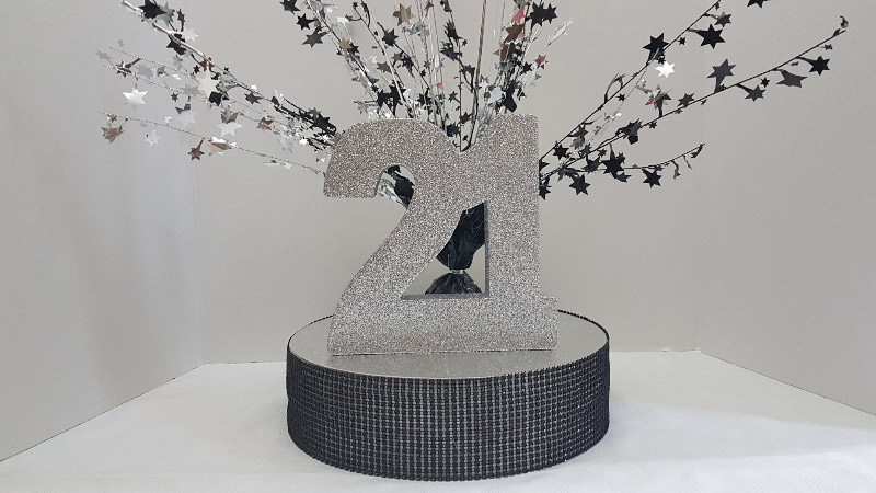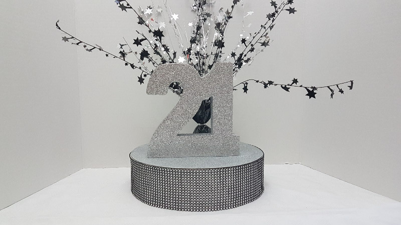 Next choose from silver, gold or a rose gold glittered number to stand on top of the diamante riser. You can also add a foil centrepiece spray for a greater effect or choose one of these instead of a number. If you would like to add a setoff foil balloons we can also make these up for you if your event is local or can arrange for everything to be posted to you instead.