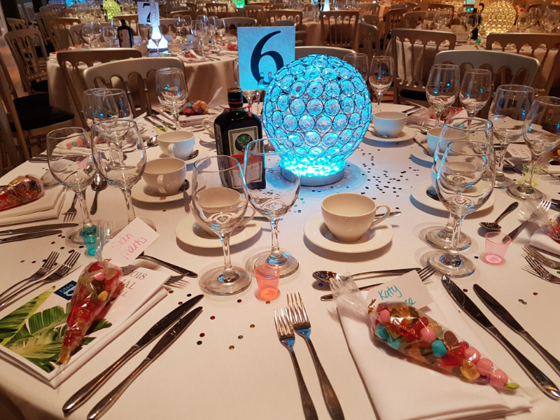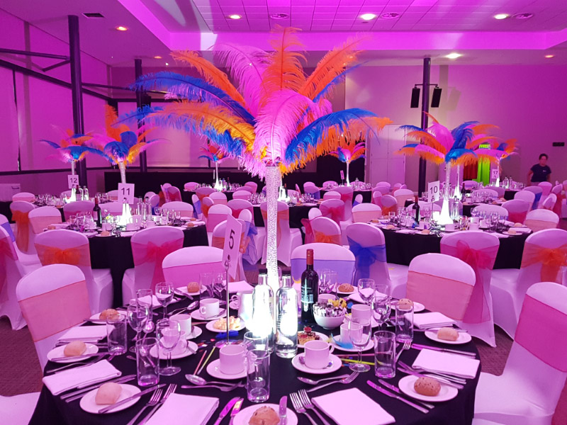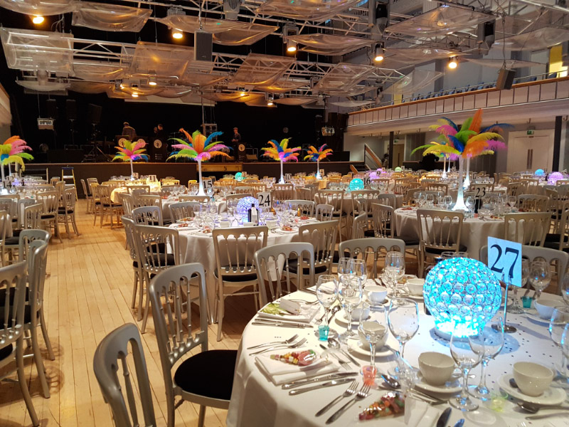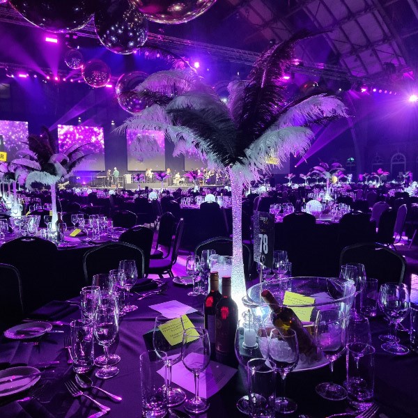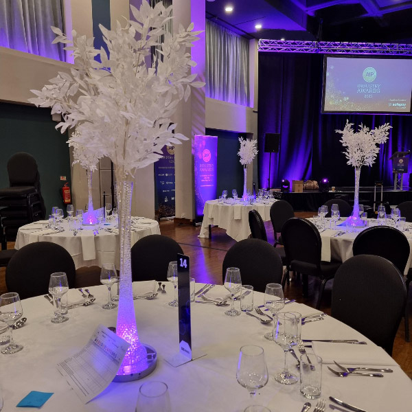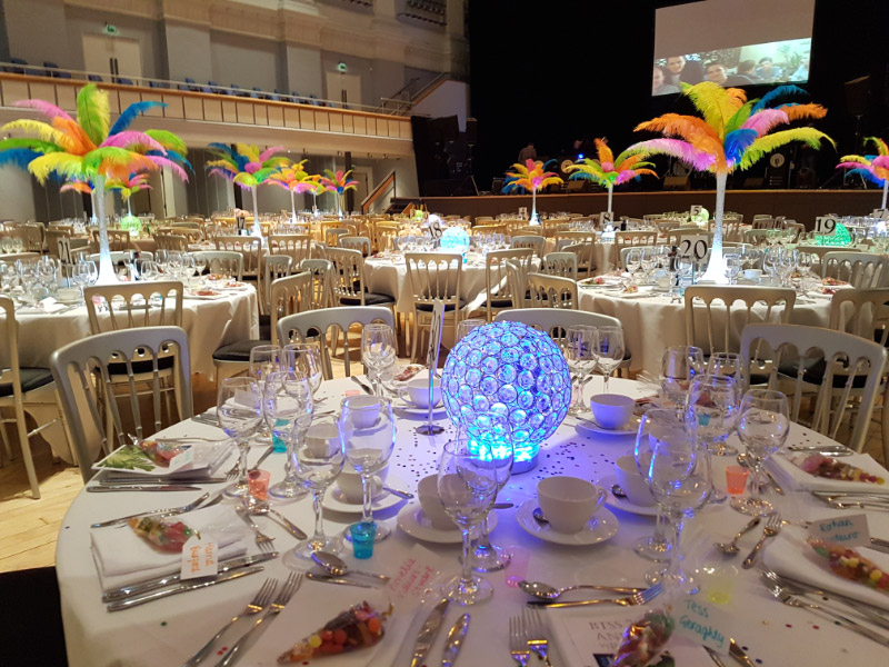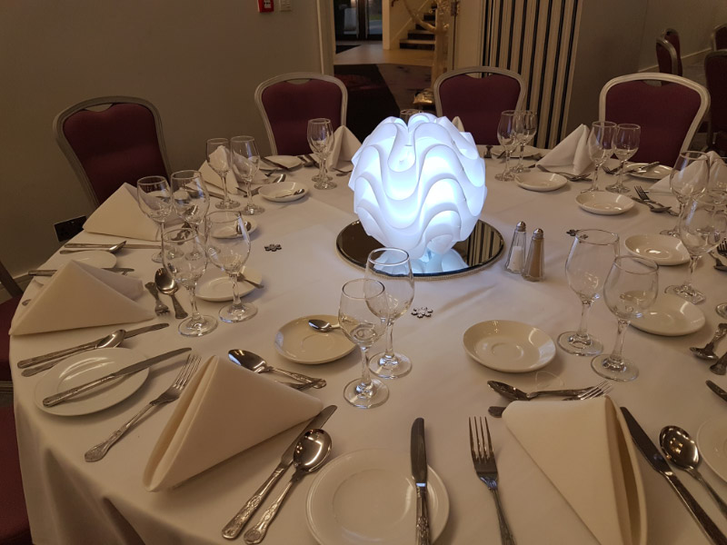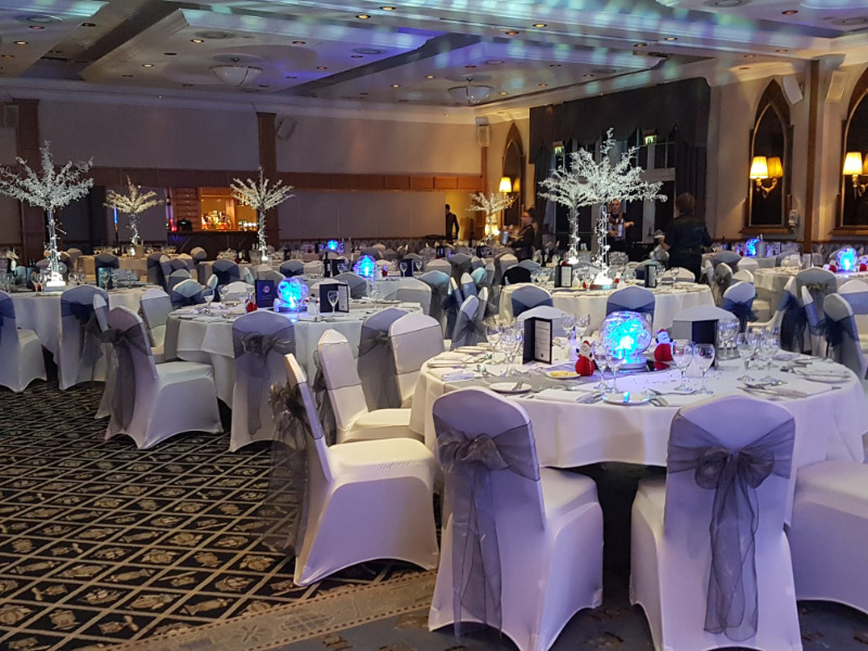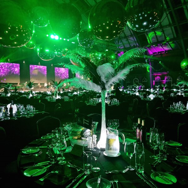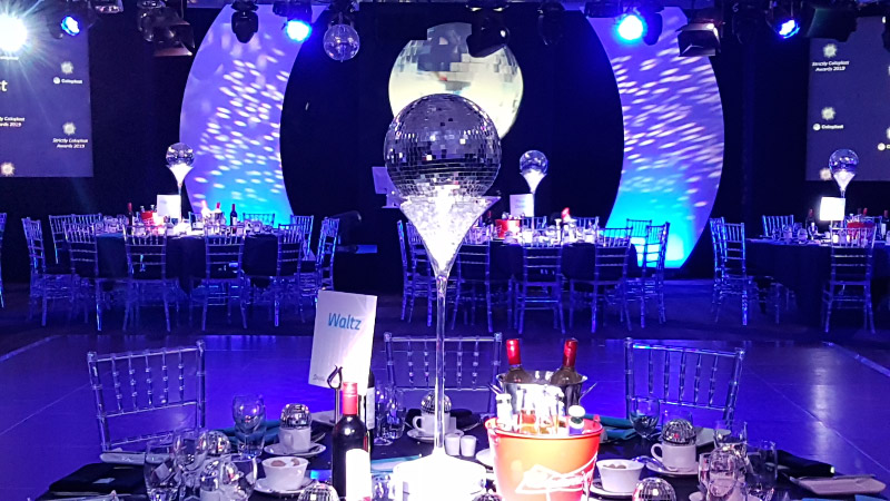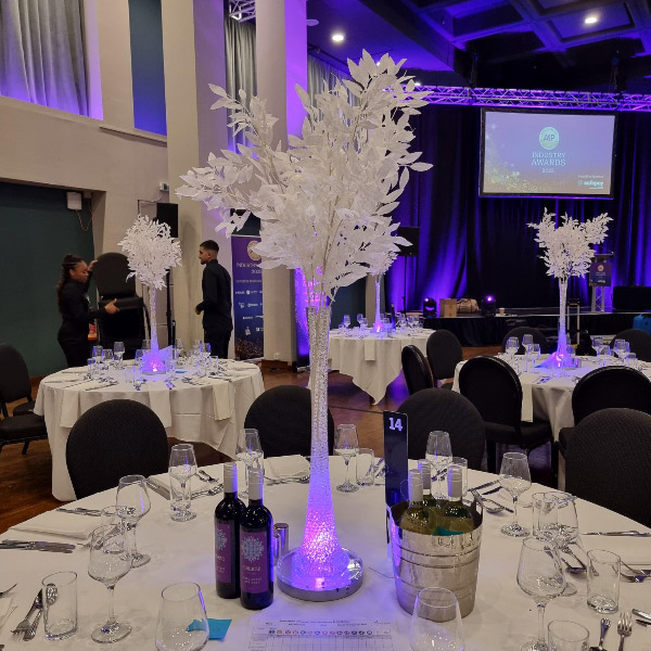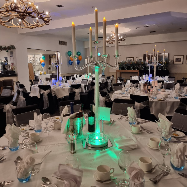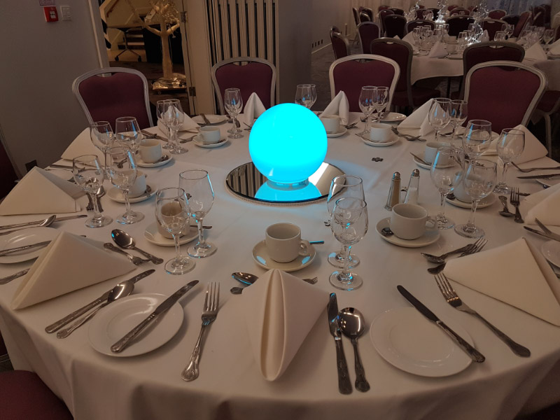 Choose from a range of tall centrepieces such as our crystal trees with uplighting, ostrich feather displays in lily vases or martini vases, mirrorball centrepieces, crystal table chandeliers and crystal candleabras. If you are looking for a lower table centrepiece then choose from our bubble bowls filled with silver wire balls which can then be illuminated in many different colours, crystal balls, moon balls, crystal cones and our star lamps.