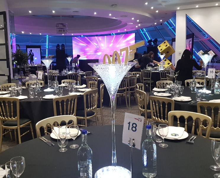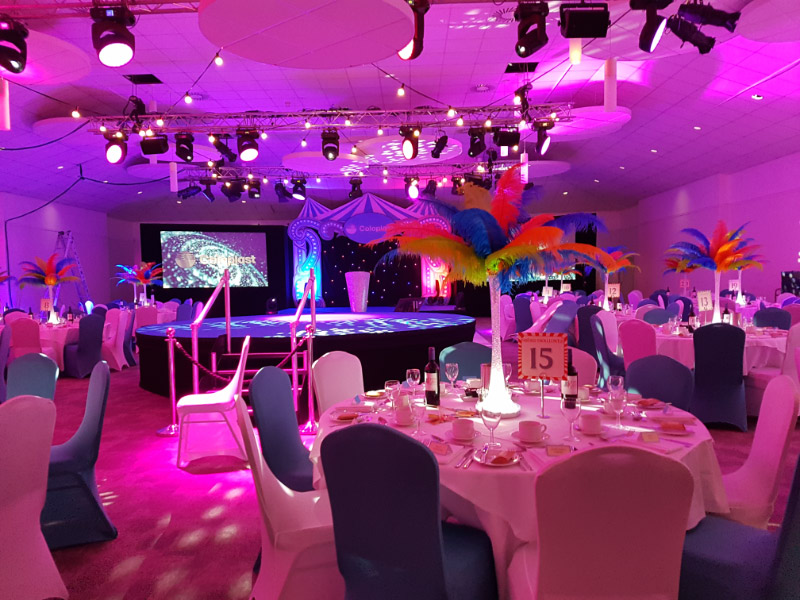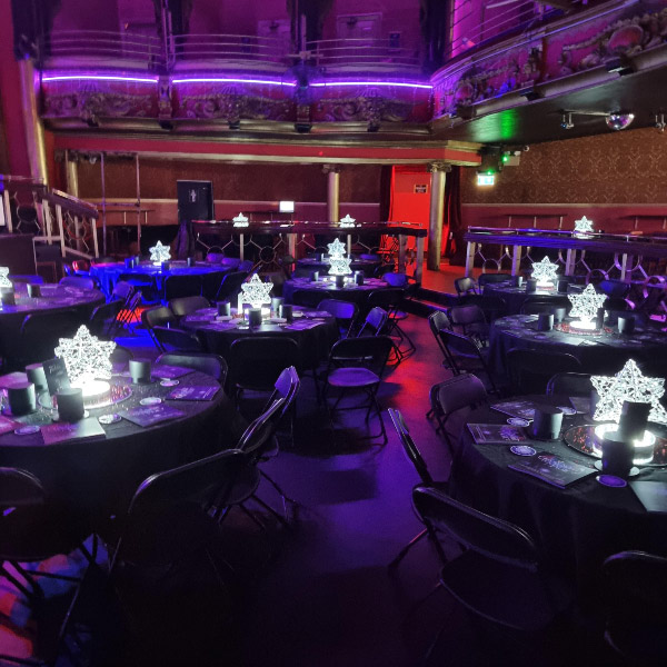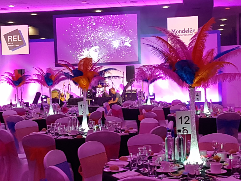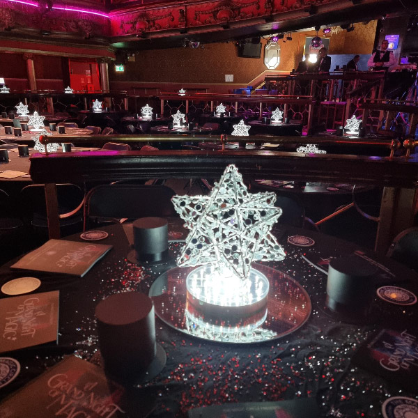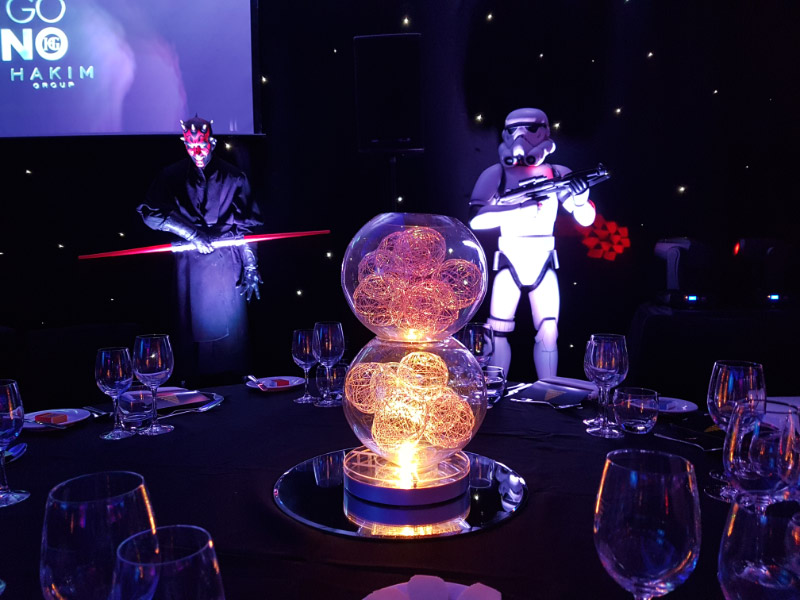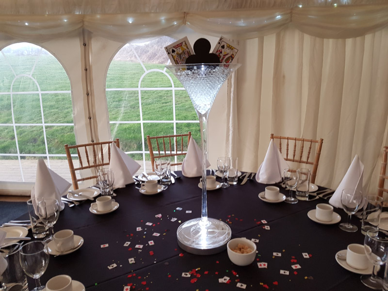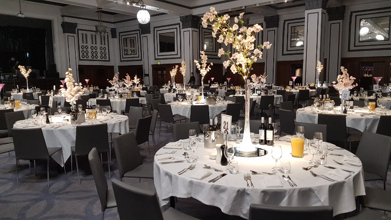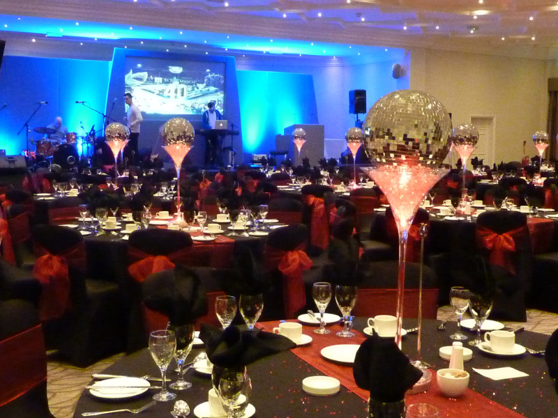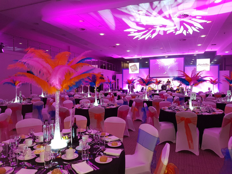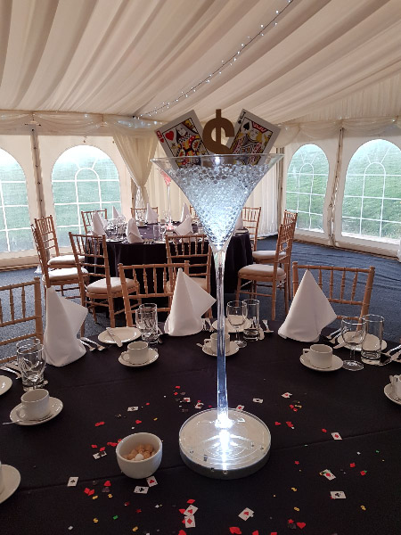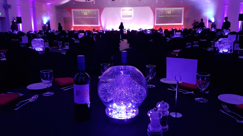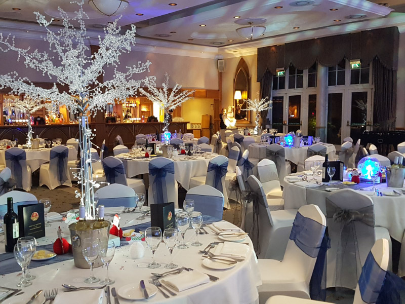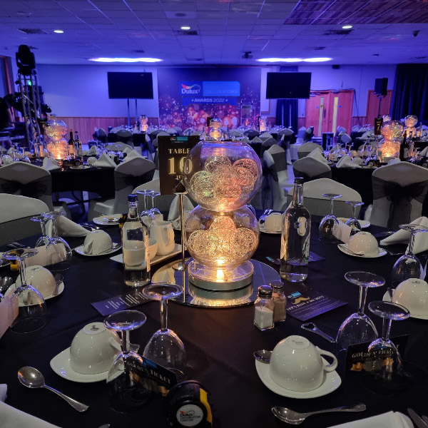 Choose from a range of tall centrepieces such as our crystal trees with uplighting, ostrich feather displays in lily vases or martini vases, mirrorball centrepieces, crystal table chandeliers and crystal candleabras. If you are looking for a lower table centrepiece then choose from our bubble bowls filled with silver wire balls which can then be illuminated in many different colours, crystal balls, moon balls, crystal cones and our star lamps.
