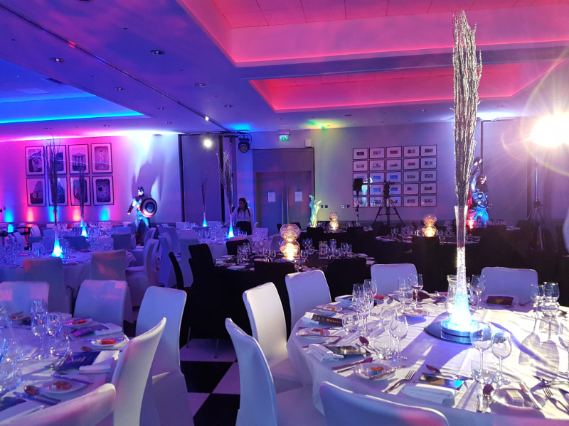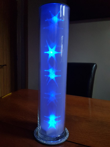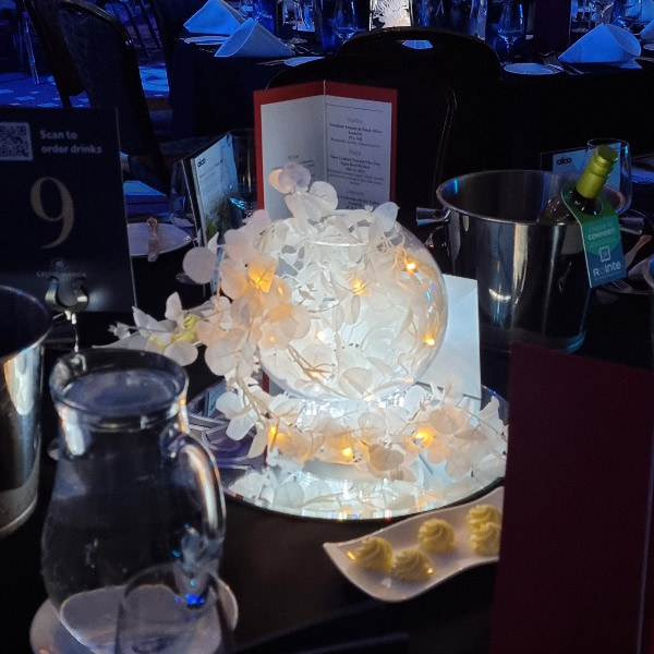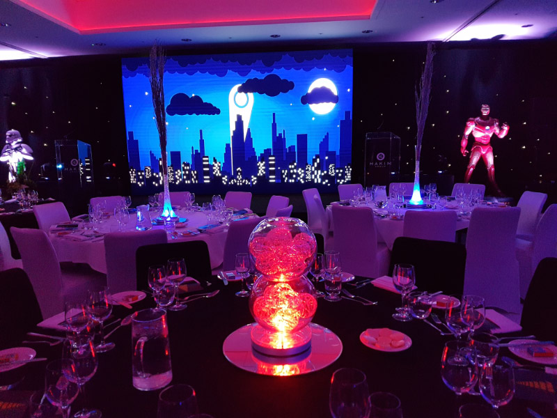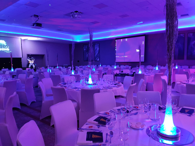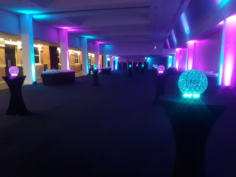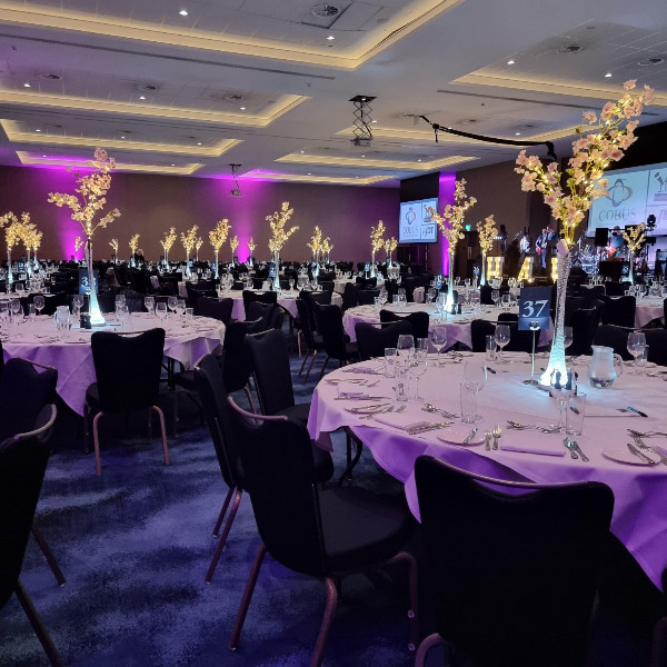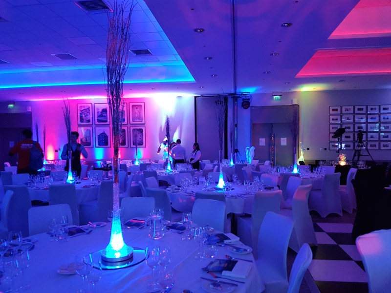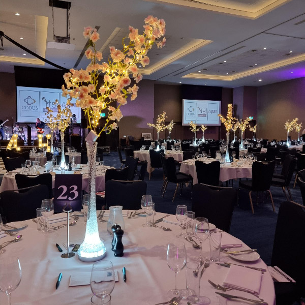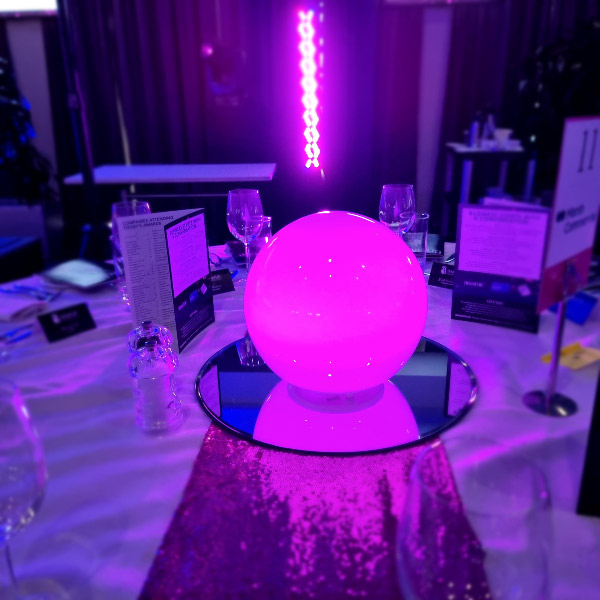 Welcome to our new range of LED centrepieces for hire. These will transform your event and achieve a real wow factor. Our LED lights can be programmed to your colour scheme and can be either static, fading slowly or quickly or flashing. Alternatively our white LED light bases will light up our vases and make your centrepieces really glow. Why not also book one of our Starlight backdrops which can also have the inbuilt lights adjusted to different colours.